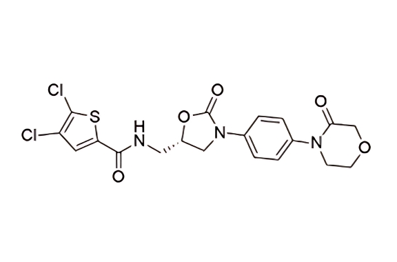 | Synonyms: ((S)-4,5-Dichloro-N-({2-oxo-3-[4-(3-oxomorpholino)phenyl]oxazolidin-5-yl}methyl)thiophene-2-carboxamide) |